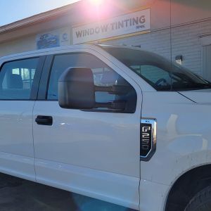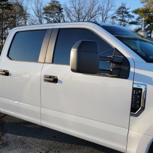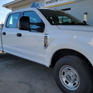 We are Delaware's Premier F Series Truck Specialists! We installed our XPEL CS 5% on the rear of this vehicle! We then installed a lighter shade of XPEL CS 20% on the front 2 doors with a 5% Glare Strip! These different shades help with keeping everything private and protected on the inside of the vehicle without making it impossible to see out of the vehicle while driving! The Glare strip is great at cutting down the direct sun from coming into the vehicle from the windshield! The 20% is a great medium shade if you don't want it too dark and hard to see out at night!